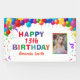 Happy 13th Birthday Colourful Balloons Confetti White Photo Banner. For further customisation, please click the "Customise it" button and use our design tool to modify this template.