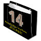 This fun and simple Christmas themed and birthday themed December 25th birthday gift bag design features a large number "14" with a green, white, and red stripes pattern, along with the message "Happy 14th Birthday & Merry Christmas,", and a customisable name. The background is coloured black. A gift bag like this might be fun to use when wrapping gifts or presents that are being given to somebody whose fourteenth birthday falls on Christmas Day (December 25th). [~Z0000407]