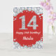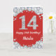 Happy 14th Birthday Red and Silver Glitter Card with personalised name. For further customisation, please click the "Customise it" button and use our design tool to modify this template.