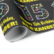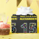 This fun birthday themed wrapping paper design features a large number "15" filled with a pattern of decorative star shapes having various colours and sizes, along with the message "Happy 15th Birthday,", and a personalised name. The background is coloured black. Birthday themed wrapping paper like this might be used when giving a gift or present in celebration of somebody’s fifteenth birthday. [~Z0000429]