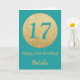 Happy 17th Birthday Teal and Gold Glitter Card with personalised name. For further customisation, please click the "Customise it" button and use our design tool to modify this template.