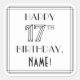 This stylish 1920s/1930s era inspired art deco look birthday square sticker design features the message “HAPPY 17TH BIRTHDAY,”, and a customisable recipient name. The number “17TH” has a fancy geometric lined appearance, and there is also a lined border around the birthday greeting message. Luxurious stickers like these might be distributed or used at a birthday party held for somebody in celebration of their seventeenth birthday, or perhaps used when wrapping presents/gifts or preparing invitations for such an event. [~Z0000647]