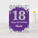 Happy 18th Birthday Purple and Silver Glitter Card with personalised name. For further customisation, please click the "Customise it" button and use our design tool to modify this template.