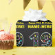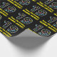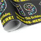 This fun birthday themed wrapping paper design features a large number "19", filled with a pattern of star shapes of various sizes and colours. It also features the message "Happy 19th Birthday,", and an editable name. The background is coloured black. Wrapping paper like this might be used when wrapping gifts being given to somebody in celebration of their 19th birthday. [~Z0000429]