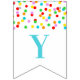Happy 1st Birthday banner with rainbow confetti pattern. Can be customised for any age.
