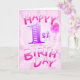 Happy 1st Birthday card. Colour: Mostly pinks and purples Greeting inside: Happy birthday, May this day always be a special one to remember