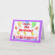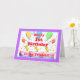First Birthday card for triplets with my design of three little chickens on birthday cakes holding balloons, with the text "Happy 1st Birthday to the Triplets!"