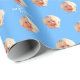 Personaized kid's photo birthday party wrapping paper with a face cut out and the message "happy 1st birthday". Design with a light blue background, and a happy birthday message. To change the colour please click the button to edit the design. To make the cut-out of the photo you can download any free mobile app, or use Canva, or Photoshop. The background needs to be transparent when uploading it.
