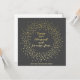 NewParkLane - Elegant personalised New Year Card, with 'happy 2024' (written fully as 'two thousand and twenty-four') in an elegant brush / script typography in faux gold, with a gold confetti wreath, against a deep grey background.