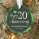 Lovely green Happy 20th Anniversary ornament. Faux foil on 20th and as a border frame. Green oil background created by Valarie Wade. Tiny green heart gem in the upper corner. Names and dates are adjustable.