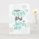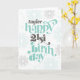 This folded birthday greeting card features a decorative typographic design with the recipient's name and says "Happy 21st birthday". Decorated with mint and grey firework bursts and stars, this festive twenty-first birthday card is perfect for a celebration.