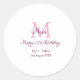 Happy 21st Birthday pink add name monogram modern Classic Round Sticker