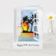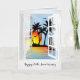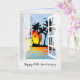 Tropical sunset scene of palm trees and sailboat in an open window for 25th anniversary.