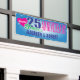 Happy 25th Anniversary banner with custom names. Bright colours set a festive tone for an anniversary party. This banner is set up with outdoor material and grommets, but you can switch to Indoor if you want. Surprise the guests of honour with a colourful banner at their party or at their home!