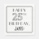 This stylish 1920s/1930s era inspired art deco look birthday-themed paper napkin design features the message “HAPPY 25TH BIRTHDAY,”, along with a personalised recipient name. The number “25TH” has a fancy geometric lined look, and there is also a multi-line border around the birthday greeting message. Birthday themed paper napkins like this might be fun to use at a birthday party being held for somebody who is celebrating their twenty-fifth birthday. [~Z0000644]