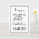 The front of this stylish Roaring Twenties art deco inspired birthday greeting card design features the message “Happy 25th Birthday,” and a personalised recipient name. The number “25th” on the front has a fancy lined appearance, and there is also a lined border. The inside features a personalised birthday greeting message, or could perhaps be cleared and left blank if a message is to be written by hand instead. A luxurious, customisable birthday greeting card like this might be a fun way to deliver a birthday greeting message to somebody who is celebrating their twenty-fifth birthday. [~Z0000641]