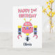 A cute 2nd birthday pink robot birthday card featuring a customizable name for the birthday girl.