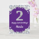 Happy 2nd Birthday Purple and Silver Glitter Card with personalised name. For further customisation, please click the "Customise it" button and use our design tool to modify this template.