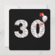 Birthday party invite with bold black and white happy 30 text on black with party balloon bouquet