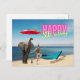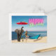 A 30th birthday is special so why not celebrate with a fun and funky not-so-average greeting that features pretty beach scene with vintage dancer cutout, an elephant carrying a parasol and "happy 30th birthday" in pink and yellow neon text.
