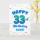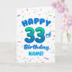 Celebrate their 33rd birthday with a bright, cheerful, and personalizable birthday card! This custom name birthday card features a bold number thirty three balloon and colorful confetti.