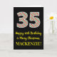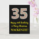 The front of this simple and fun Christmas-themed and birthday-themed December 25th birthday greeting card design features a large number "35" with a red/white/green stripes pattern, along with the message "Happy 35th Birthday & Merry Christmas,", and a custom name. The background of the front is coloured black. The inside features a customisable birthday greeting message, or could perhaps be cleared and left blank if a message is to be written by hand instead. A custom birthday card like this might be a fun way to send birthday wishes to somebody who is celebrating their thirty fifth birthday and who was also born on December 25th (Christmas Day). [~Z0000405]