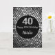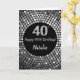 Happy 40th Birthday Black and Silver Glitter Card with personalized name. For further customization, please click the "Customize it" button and use our design tool to modify this template.