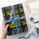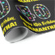 This fun birthday-themed wrapping paper design features a large number "40" filled with a pattern of decorative star shapes of various colours and sizes, along with the message "Happy 40th Birthday,", and a personalised name. The background is coloured black. Fun wrapping paper like this might be used when wrapping presents being given to somebody in celebration of their 40th birthday. [~Z0000429]