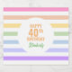 Simple minimalist design of 'Happy 40th Birthday' in the centre with beige background and pastel rainbow stripes pattern on the lower side, personalise this with your own text. Perfect for birthday cake topper for anyone.