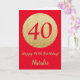 Happy 40th Birthday Red and Gold Glitter Card with personalized name. For further customization, please click the "Customize it" button and use our design tool to modify this template.