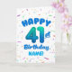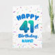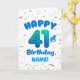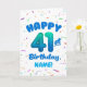 Celebrate their 41st birthday with a bright, cheerful, and personalizable birthday card! This custom name birthday card features a bold number forty one balloon and colorful confetti.