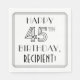 This stylish 1920s/1930s era inspired art deco style birthday themed paper napkin design features the message “HAPPY 45TH BIRTHDAY,”, and an editable recipient name. The number “45TH” has a fancy geometric lined look, and there is also a multi-line border around the birthday greeting message. Elegant birthday themed paper napkins like these might be used at a birthday party celebrating somebody’s forty-fifth birthday. [~Z0000644]
