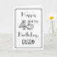 The front of this luxurious 1920s/1930s art deco inspired birthday themed greeting card design has the message “Happy 45th Birthday,” along with a custom recipient name. The number “45th” on the front has a fancy lined appearance, and there is also a multi-line border. The inside has a customised birthday greeting message, or could perhaps be cleared and left blank if a message is to be written by hand instead. A stylish, personalised birthday greeting card like this might be sent to celebrate somebody’s forty-fifth birthday. [~Z0000641]