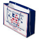 Personalise this cute, modern Blue and White Colour With Stars "Happy 4th And Happy 50th Birthday Mum" Large Size Gift Bag design.