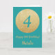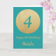 Happy 4th Birthday Teal and Gold Glitter Card with personalised name. For further customisation, please click the "Customise it" button and use our design tool to modify this template.