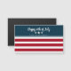 Wish your loved ones a Happy Independence Day with this Happy 4th of July American Flag Patriotic Name Magnet Card. The front of magnet card has a modern red, white and blue American Flag like design has the greeting "Happy 4th of July" in white script lettering on dark blue stripe with three stars. It has red and white stripes on the lower area. Your signature "from" name or family name is below the stars.