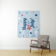 Stylish patriotic Fourth of July holiday party photo backdrop tapestry sign design features an "Happy 4th of July" quote script typography text design in red, white, blue, and navy blue colours with star accents and light blue background colour.