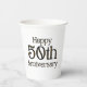 These cups feature the words "Happy 50th Anniversary" in a unique print font with gold letters black outline. All cups come in a set of eight or more and holds 8 oz great for birthday parties, summer picnics, and events. All plates are FDA approved for food contact and keeps beverages warm or cool lids optional printed in USA.