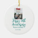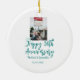 Happy 50th anniversary photo turquoise bow name da ceramic ornament