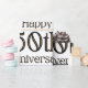 This wrapping paper feature the words "Happy 50th Anniversary" in a unique print font with gold letters black outline. All wrapping papers are offered in four types of premium paper and five different sizes. Has a softer surface and dull finish with full colour edge to edge printing on 60lb, text weight matte paper. Great for all types of gift wrapping for anything, from birthdays to graduation, weddings to anniversaries.