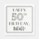 This stylish 1920s-1930s era inspired art deco look birthday paper napkin design has the message “HAPPY 50TH BIRTHDAY,”, along with a personalised recipient name. The number “50TH” has a fancy geometric lined appearance, and there is also a multi-line border around the birthday greeting message. Paper napkins like these might be used when celebrating somebody’s fiftieth birthday. [~Z0000644]