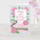 A pink vintage typewriter surrounded by peony flowers and leaves with a chickadee bird perched on the typewriter. A piece of paper from the typewriter has the handwritten words Happy 50th Birthday Daughter. A lovely birthday card for your daughter! © Ness Nordberg