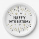 Happy 50th Birthday Fireworks White Black Gold Paper Plate