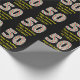 This fun and simple Christmas-themed and birthday-themed December 25th birthday wrapping paper design features a large number "50", with a red, white, and green stripes pattern. It also features the message "Happy 50th Birthday & Merry Christmas,", and an editable name. The background is coloured black. Wrapping paper like this might be a fun way to wrap gifts or presents that are being given to somebody who was born on Christmas Day (December 25th) and who is celebrating their fiftieth birthday. [~Z0000406]