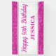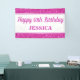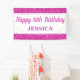 This happy birthday banner features faux pink glitter. Personalise it with a name.