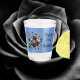 Crafted from high-quality glass, this shot glass is not only a functional addition to your party but also a cherished keepsake for your guests. Its compact size makes it perfect for toasts, shots, or small sips of your favourite beverage. Each time it's used, it will remind everyone of the joy and significance of this special milestone. Happy 50th Birthday Red and Black Roses on a blue background. Cheers to half a century of wonderful memories!
