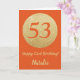 Happy 53rd Birthday Orange and Gold Glitter Card