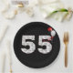 55th birthday party with bold black and white happy and number 55 text on black with party balloon bouquet.