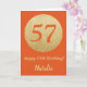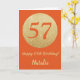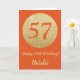 Happy 57th Birthday Orange and Gold Glitter Card with personalised name. For further customisation, please click the "Customise it" button and use our design tool to modify this template.