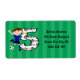 Celebrate the soccer star's 5th birthday with this cute soccer button featuring a soccer player inblue and black celebrating next to a large number 5. Customise with your own information for cute personalised address labels. The background is two tones of green like a soccer pitch.